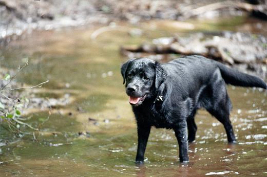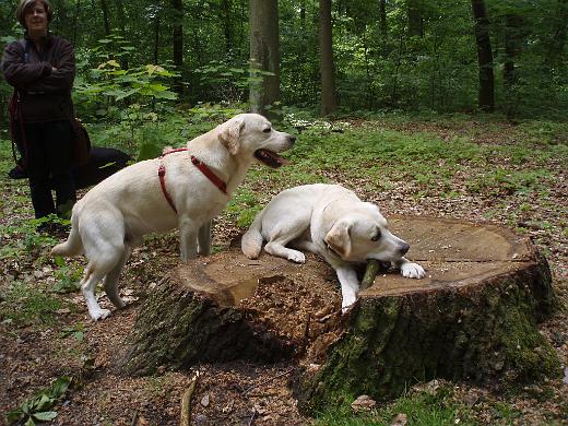 Abby auf dem Baumstumpf mit ihrem Dauerbegleiter Linus