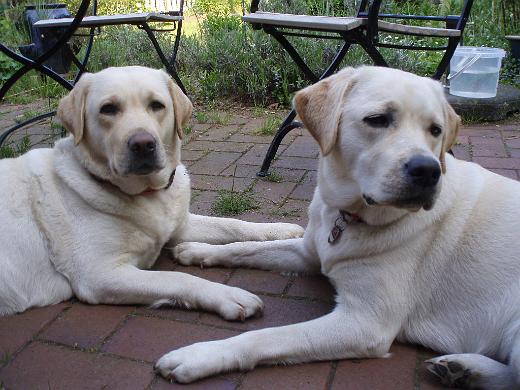 Leider beim Treffen verhindert und abwesend: Emmi-, rechts im Bild, während eines Besuchs mit Mama Islay in Mover