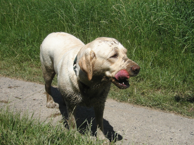 Apropos Behausung: Es sollte nicht unerwähnt bleiben, dass ein Labrador haart. Egal, wie häufig man eifrig den Staubsauger schwingt, - es wird Haare geben, und zwar überall. Ein Haushalt mit Hund ist zwangsläufig nicht zu vergleichen mit einem hundefreien Haushalt. Dazu kommt beim Labrador seine Leidenschaft zu baden. An die Wasserqualität stellt er keine hohen Ansprüche, es dürfen gerne Modderpfützen oder stinkige Gräben sein, ganz nach dem Motto: Hauptsache Spaß haben! Die Folgen davon sind dann kleine Sanddünen auf dem Boden, wo der Hund liegt. Eine geringfügige Knirschigkeit des Fußbodens sollte einen nicht gleich in den Wahnsinn treiben…..Gelegentlich übergibt sich auch mal ein Hund, nicht unbedingt bevorzugt auf den edlen Teppich, aber es kann vorkommen. Manchmal apportieren sie auch fragwürdige Schätze wie Knochen, die sie im Wald finden, Igel aus dem Garten oder am Gewässer auch schon mal einen toten Fisch!